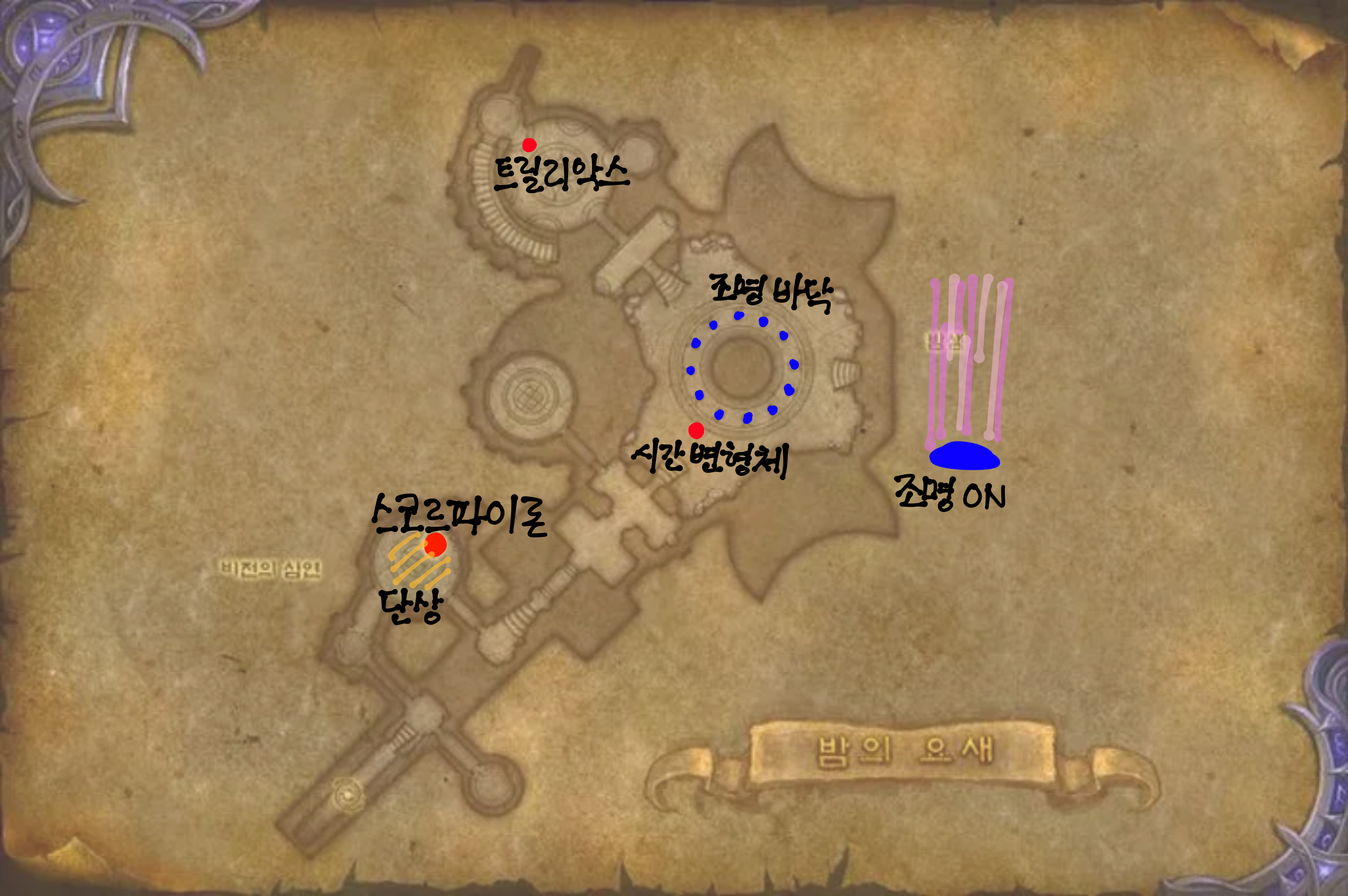 빛 기둥이 생기면서 조명이 켜지는데 조명을 8개 이상 켠 상태로 시간 변형체 처치